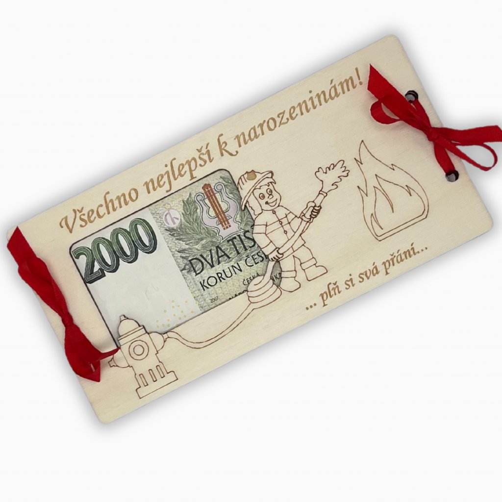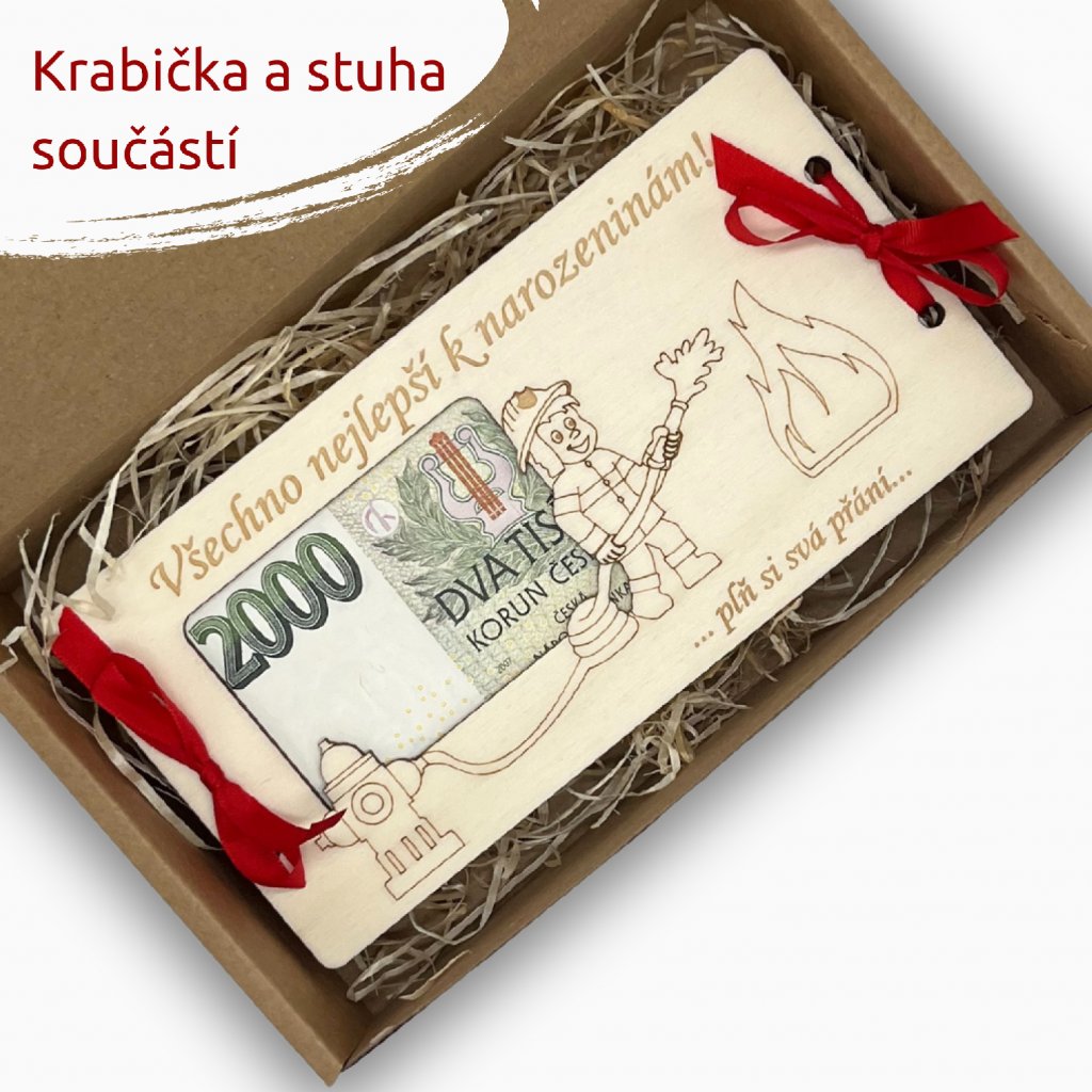 Dárková obálka na peníze pro HASIČE krabička a stuha součástí