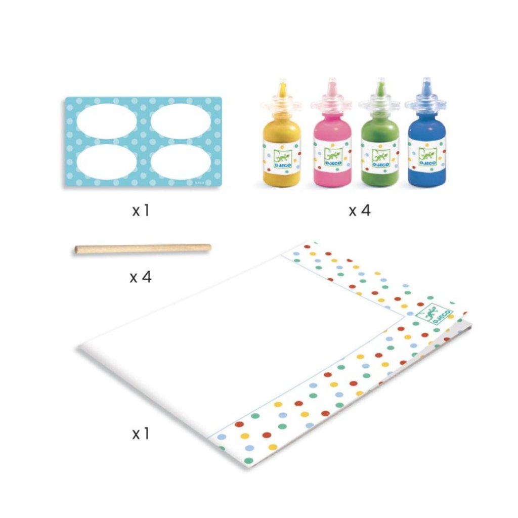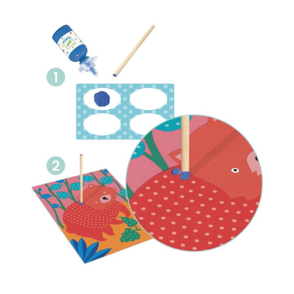 Tato kouzelná kreativní sada přináší 4 roztomilá zvířátka na pevném kartonu, která čekají na vaše šikovné ručičky. Stačí namočit přiloženou tyčinku do barvy a dotvořit tělíčka podle jednoduchého obrázkového návodu – nebo popustit uzdu fantazii a vytvořit úplně vlastní veselé vzory.