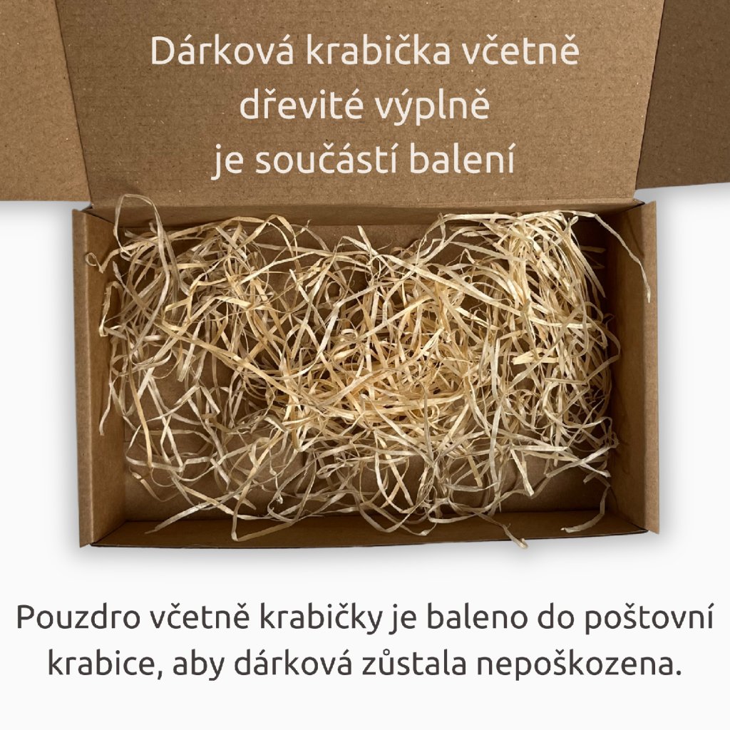 Pouzdro na peníze jsme vyrobili pomocí laseru a jeho rozměr je 19 x 9,5 cm. Pouzdro je baleno v kraftové krabičce s dřevitou výplní.