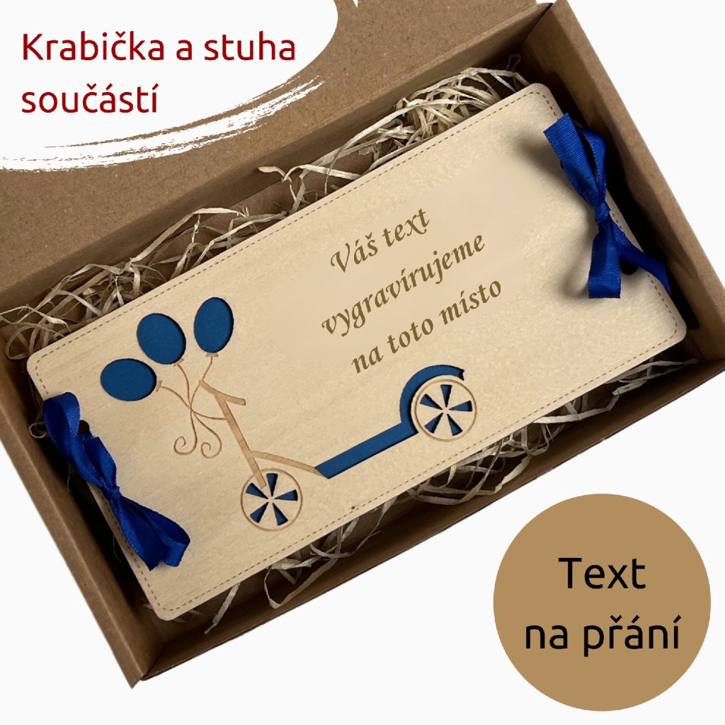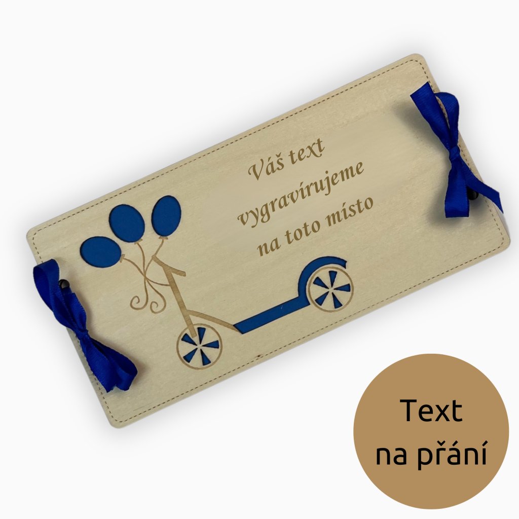 Dřevěné pouzdro na peníze - KOLOBĚŽKA - Váš text krabička a stuha součástí