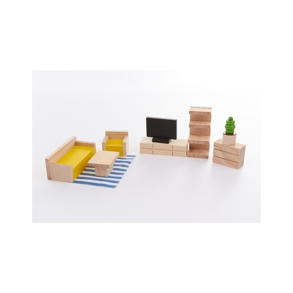 Vybavte si domeček pro malé panenky nábytkem do obývacího pokoje z bukového dřeva.