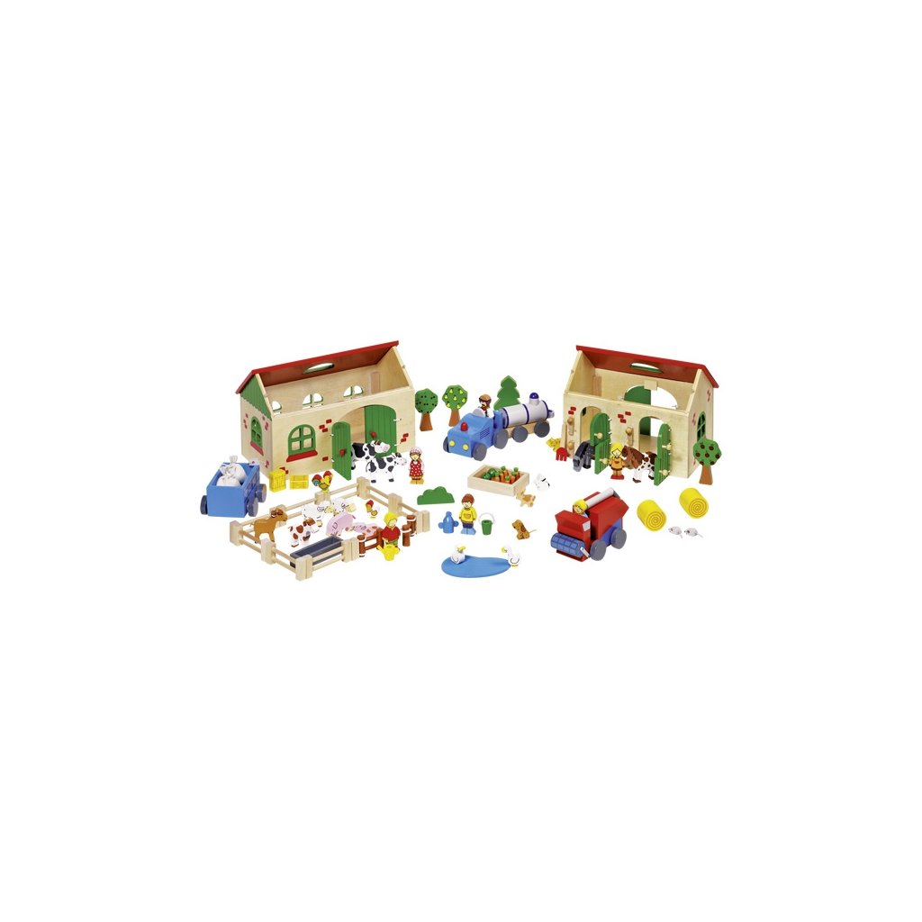 Statek pro ubytování zvířátek, farmáře a parkování traktoru. Sada obsahuje 71 dílků pro zábavné hraní na farmáře.