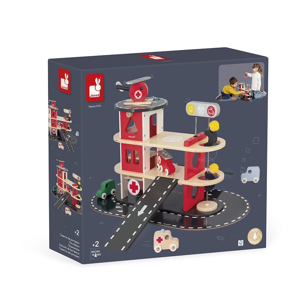 Všichni mohou používat rampy, výtah a okruh kolem hasičské stanice, aby se dostali na místo požáru! Bolid je kolekce vozů Janod! Tato řada byla navržena pro nejmenší ve věku 2 a více let a navíc obsahuje vysoce kvalitní materiály, aby byly všechny hračky Bolid opravdu pevné! S těmito vozidly pevně usazenými na pryžových kolech si vaše dítě bude moci užít spoustu hodin hry v písku, zahradě nebo v dětském pokoji. S dřevěnou hasičskou stanicí a příslušenstvím 9 ks si vaše ratolesti vychutnají spoustu zábavy.