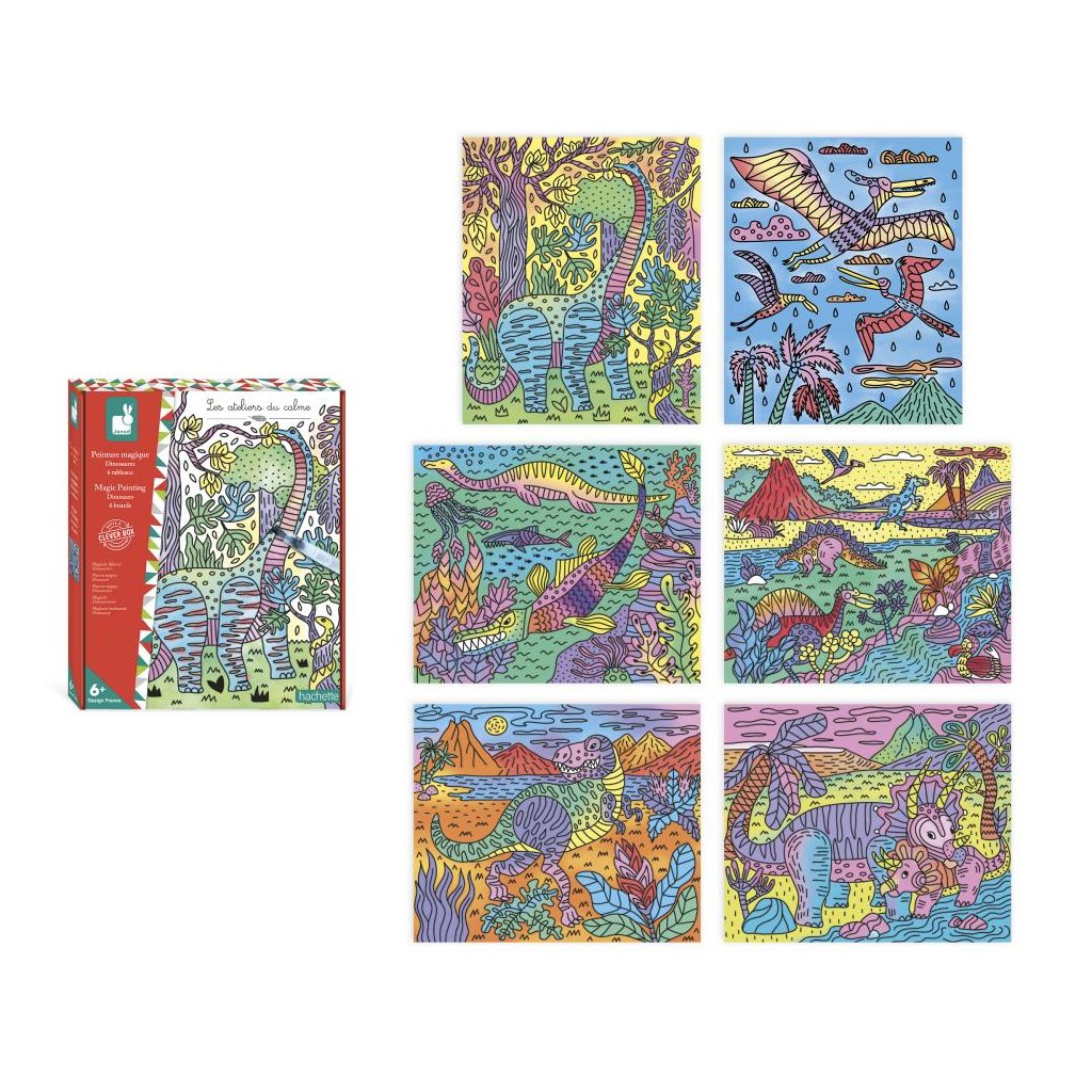Součástí této sady je 6 magických maleb. Produkt s motivem dinosaurů zobrazuje druhy, které si děti jistě zamilují! Naučí se dávat pozor, aby se barvy navzájem nemíchaly. Vysvětlující brožurka jim pomůže uvést jejich krásné obrazy do života, krok za krokem!