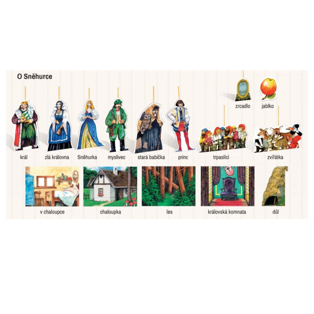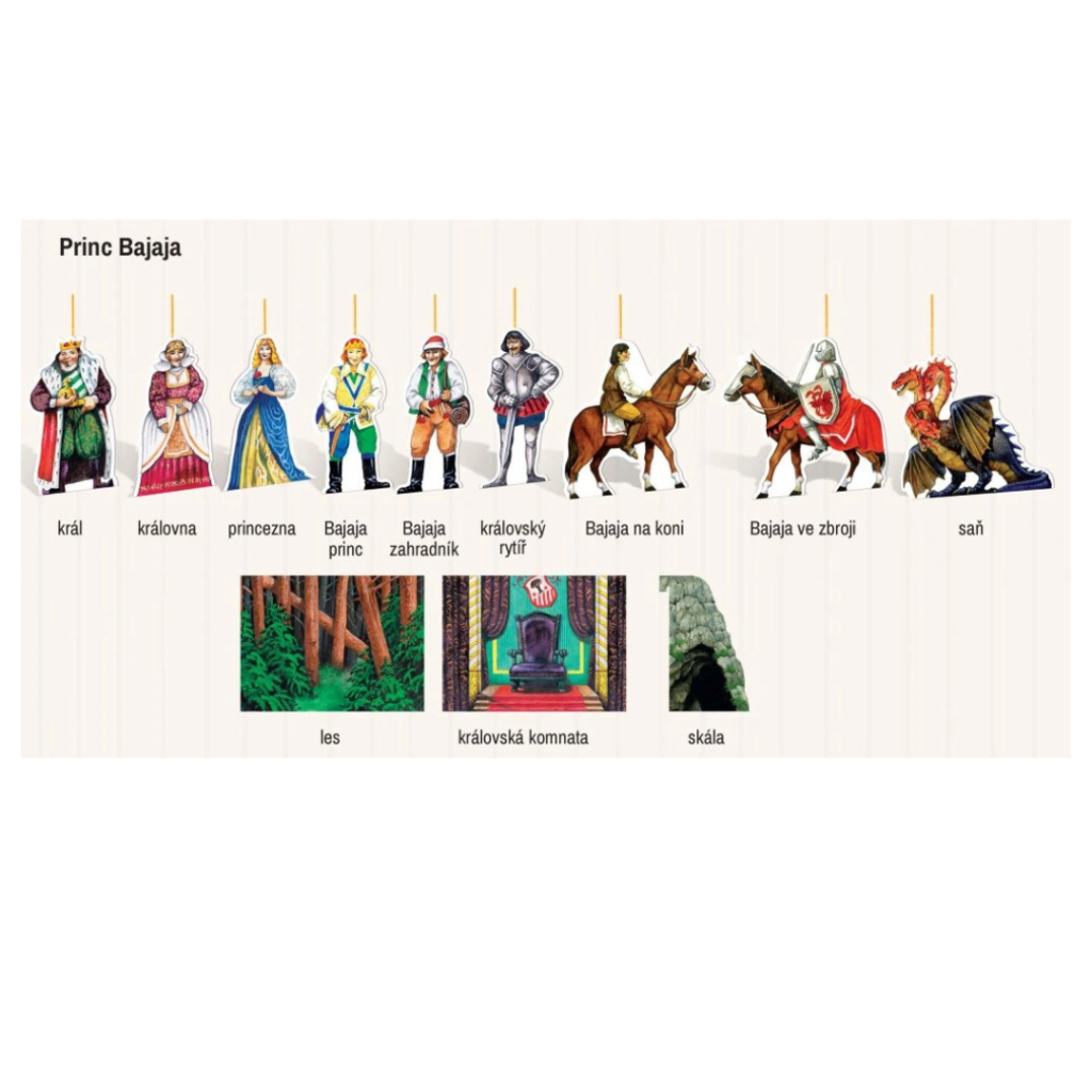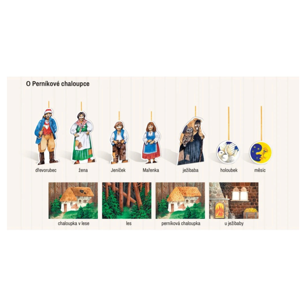 - funkční kulisy - možnost otvírání a zavírání truhly s pokladem nebo pece pro ježibabu