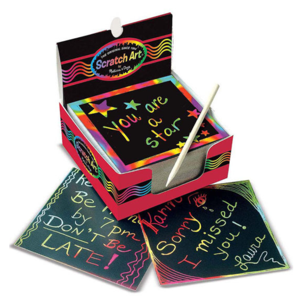 Malí umělci, kteří rádi tvoří vlastní obrázky vyškrabovací technikou mohou nejen tvořit, ale i vytvářet vlastní poznámky a vzkazy do mini bločku.